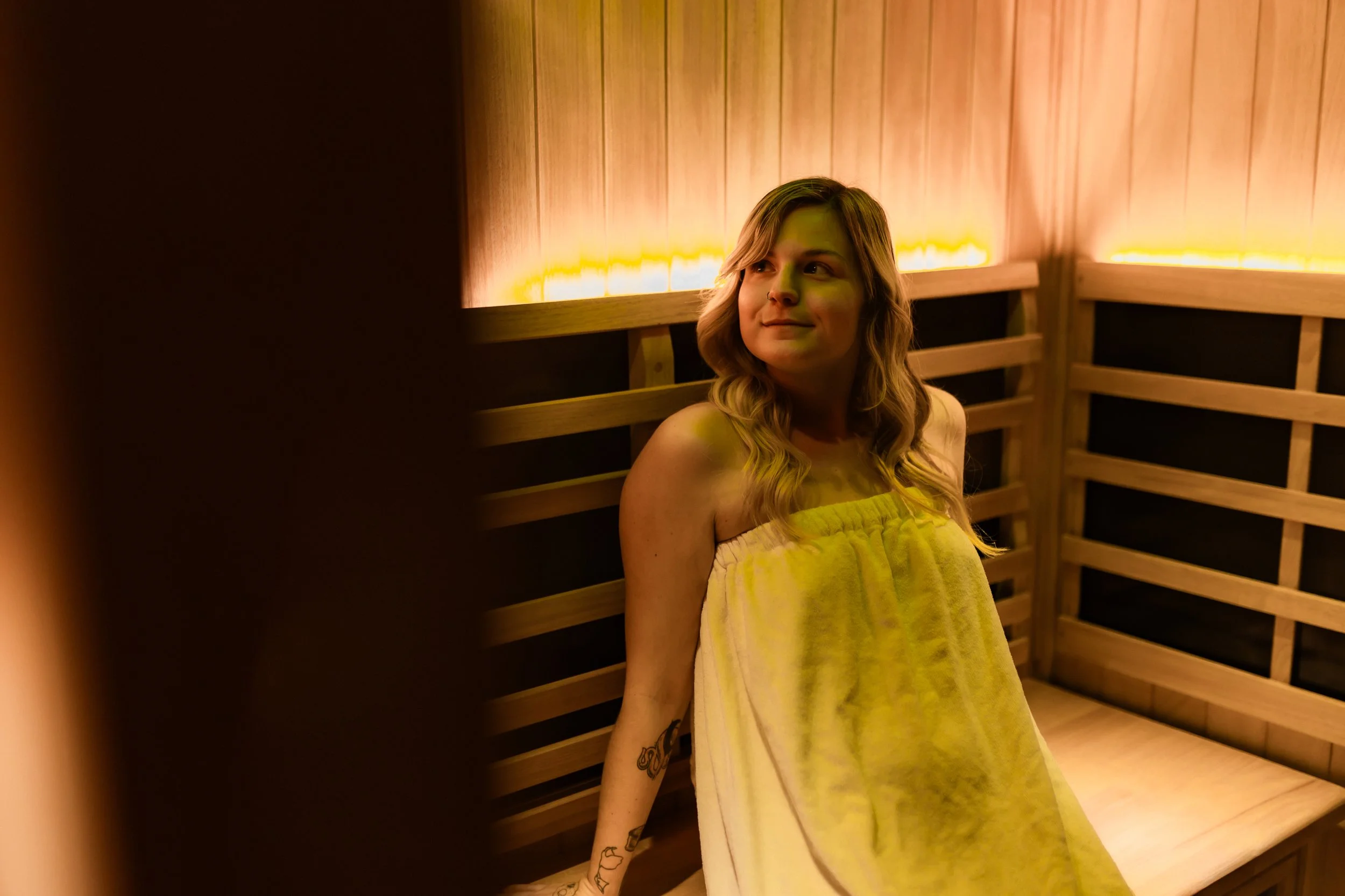 Enjoy a relaxing infrared sauna session. Read a book, listen to a podcast or just disconnect while detoxing your body. Our sauna is tucked away in its own private room. All sessions are reserved for one hour all to yourself.